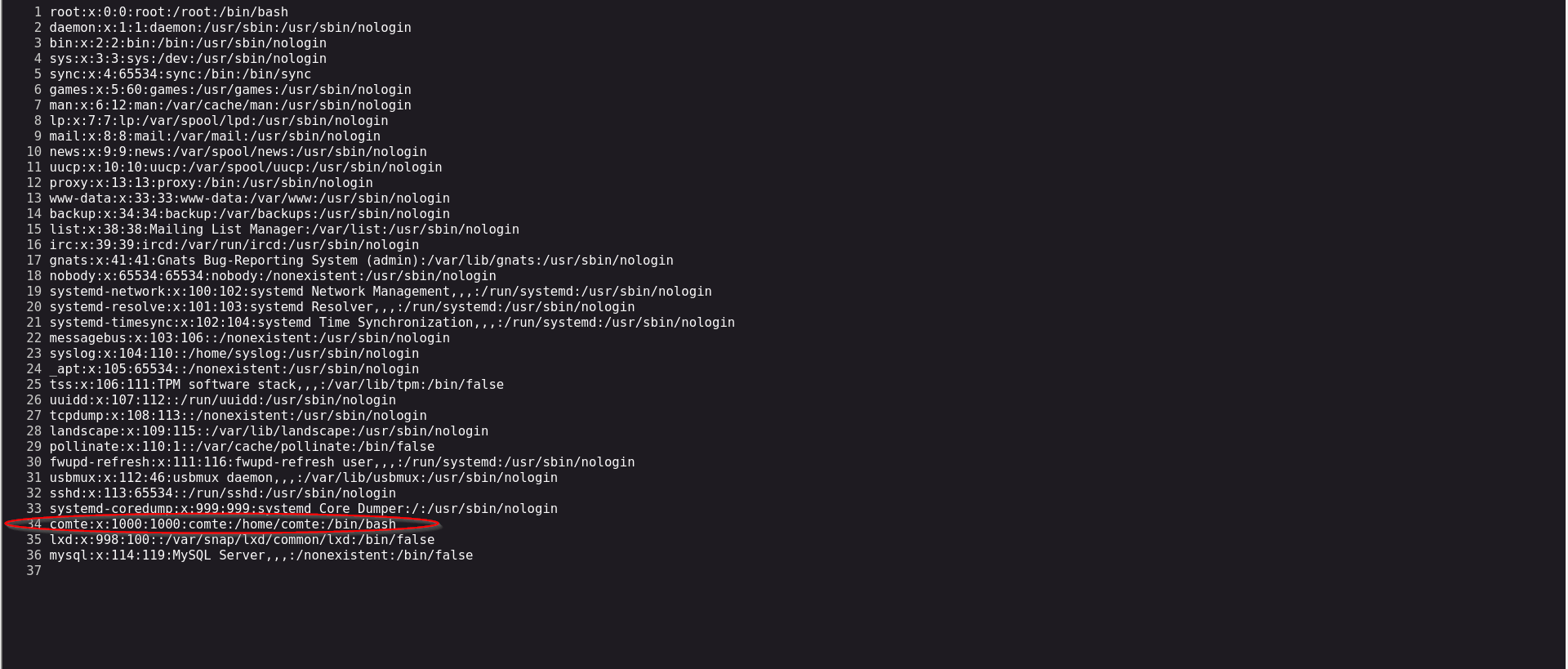 comte:x:1000:1000:comte:/home/comte:/bin/bash