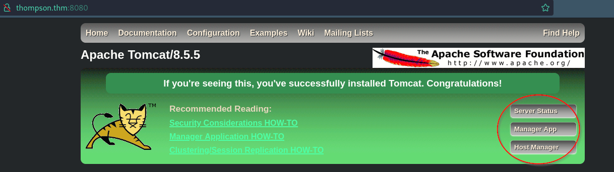 http://thompson.thm:8080/ http://thompson.thm:8009/