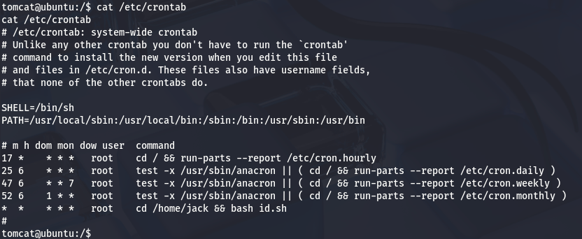uid=1001(tomcat) gid=1001(tomcat) groups=1001(tomcat)